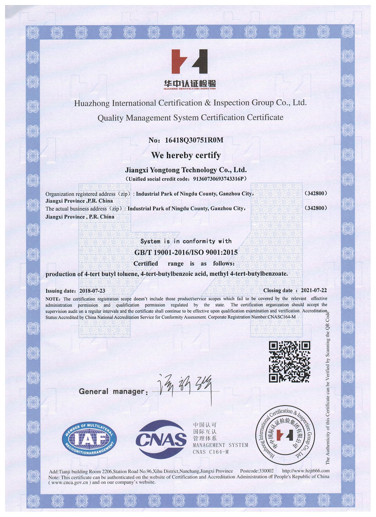 Leo Lee Sales Department Tel:+86-0797-6906333,18720892999 Email:sales@yongtongchem.com  赣ICP备13007488号