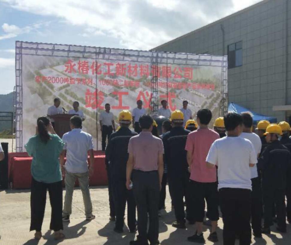 永椿化工新材料有限公司于2017年成立, 经过2年多永椿人艰苦卓绝地努力,生产设备和厂区建设已经
